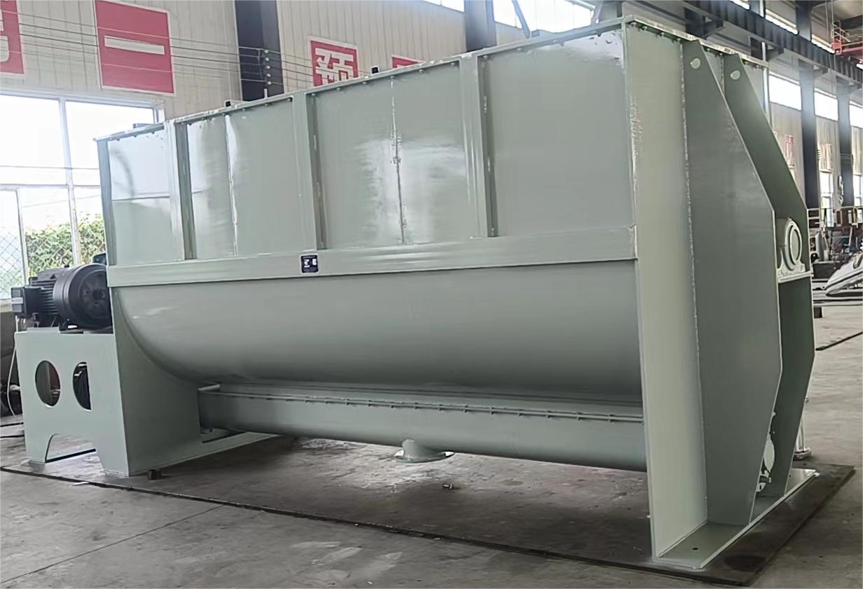 工作原理:在攪拌軸的螺旋帶運動下,使內外螺旋帶在較大范圍內翻動物料,內螺旋帶將物料兩側運動,使物料來回摻混,另部分物料在螺旋帶推動下,沿軸向徑向運動,從而形成對流循環。物料在較短時間內獲得快速均勻混合。